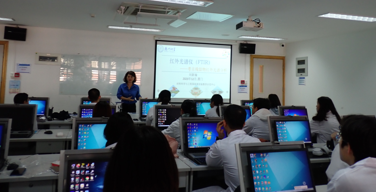 2023年12月11日下午,实验教学示范中心为历史与文化遗产学院本科生开设《红外光谱分析》实验课。红外光谱分析是本科生课程《科技考古概论》的重要内容。应课程负责人葛威副教授的邀请,中心副主任刘新瑜高级工程师加盟《科技考古概论》课程组,并承担了此次实验教学内容。共有来自历史学院考古学系的21名本科生和3名研究生参加了实验课的学习。