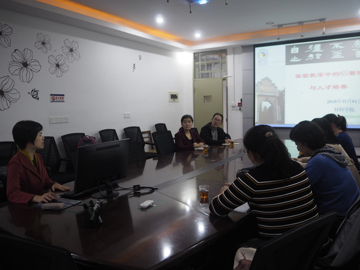 2018年11月2日,武汉理工大学材料科学与工程学院实验教学示范中心(国家级)副主任李娟娟老师带领中心骨干成员一行6人到我院实验教学中心参观交流,学习我院实验教学中心的6S管理方法。我院实验教学中心副主任周花老师及工作人员热情接待了来访人员。