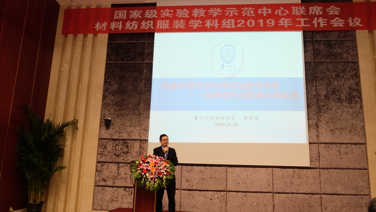 2019年11月24-26日,国家级实验教学示范中心联席会材料/纺织服装学科组在四川成都召开2019年工作会议,来自全国50多家高校代表参会,厦门大学材料学院副院长、示范中心主任罗学涛教授带队参加了该会议。