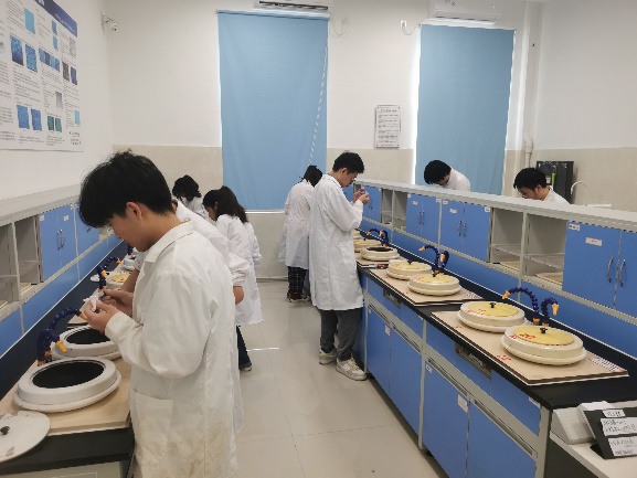 参赛选手学科跨度大,专业基础差异大,实验教学中心特别组织了赛前培训,邀请材料学院姚荣迁教授和韩佳甲助理教授作为指导老师为参赛选手进行理论知识和实验操作培训。通过4课时理论培训和为期一个月的实践操作培训,选手们熟练掌握了金相试样打磨、抛光、腐蚀等表面处理实验技能和试样金相形貌观察方法。