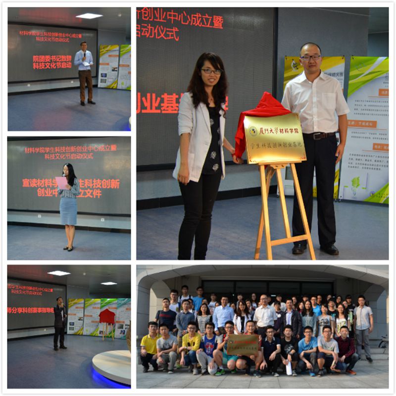 4月29日下午,材料学院学生科技创新创业中心成立暨科技文化节启动仪式在学院新楼大厅举行。校团委办公室主任、科技学术部部长张晴,材料学院党委副书记庄曦,姚荣迁副教授,材料学院团委书记杜超,副书记曹亮,教学秘书沈晓红,辅导员丁渡及院学生会全体成员参加了仪式。